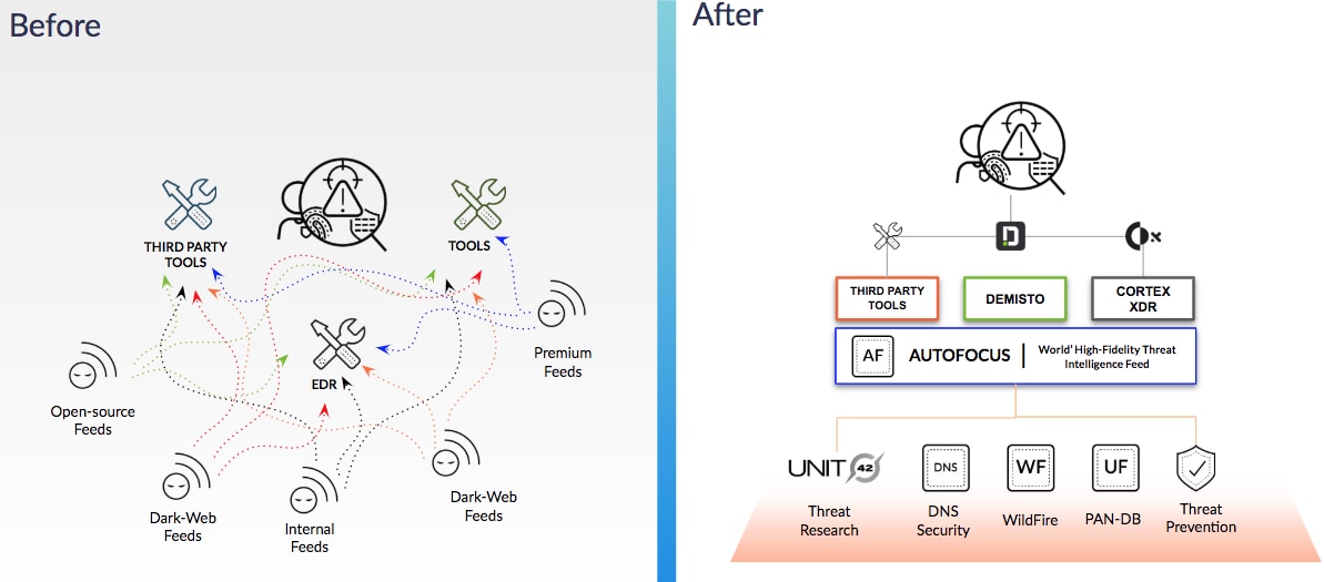 Beschleunigen Sie die Bestimmung und Auflösung von Sicherheitswarnungen, indem Sie Bedrohungsdaten aus AutoFocus und Cortex XSOAR-Playbooks für eine umfassende Ansicht des Reaktionsworkflows auf einem Bildschirm kombinieren. Dank der automatisierten wiederholbaren Aufgaben wird die Zeit der Analysten für eingehendere Untersuchungen und strategische Maßnahmen frei.