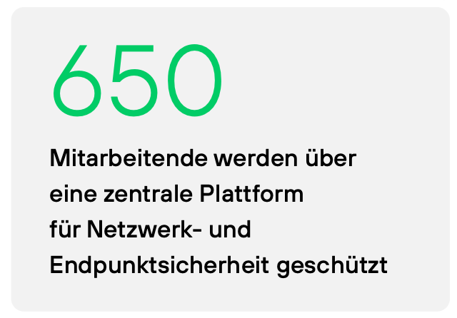 Dank einer zentralen Plattform für Netzwerk- und Endpunktsicherheit weiß das Unternehmen jederzeit, was in der Infrastruktur vor sich geht. „Wir haben jetzt immer alle Daten, Anwendungen und Benutzer im Blick, sodass Angreifer keine Chance haben, sich auszubreiten“, kommentiert der IT-Leiter.