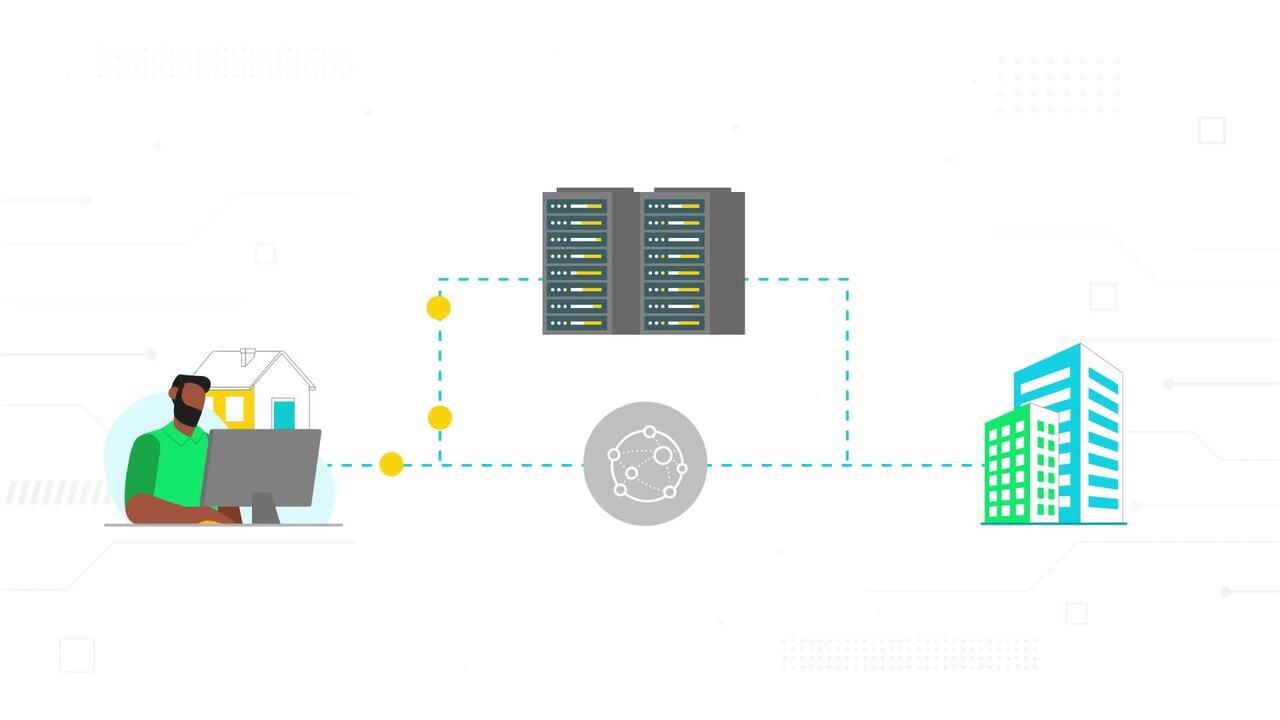 Diese Struktur ermöglicht es Organisationen, Benutzer, einschließlich Remote-Mitarbeiter, mit dem nächstgelegenen Cloud Gateway zu verbinden. Dadurch erhalten sie sicheren Zugriff auf Anwendungen und eine vollständige Transparenz des Datenverkehrs über alle Ports und Protokolle hinweg.
