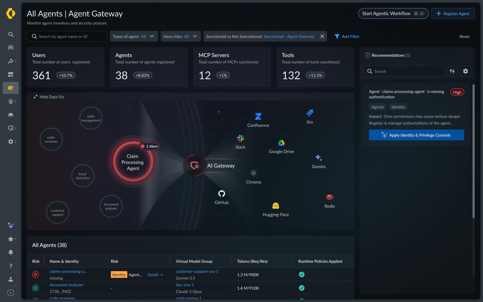 Entdecken Sie KI-Agenten für SaaS-Plattformen, Cloud-Services, Low-Code-Tools und benutzerdefinierte Umgebungen. Verschaffen Sie sich einen zentralen Überblick darüber, was Agenten tun, worauf sie zugreifen können und wie sie Entscheidungen treffen – ohne blinde Flecken durch Schattenagenten oder Drittanbieter.