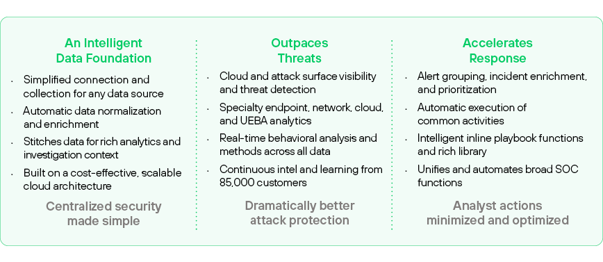 Der manuelle SecOps-Ansatz ist schon lange an seine Grenzen gestoßen. Das moderne SOC muss sich zu einem intelligenten, maschinengesteuerten und von Menschen betriebenen Sicherheitssystem entwickeln, das einen deutlich besseren Schutz in noch nie dagewesener Größe und Effizienz bietet.