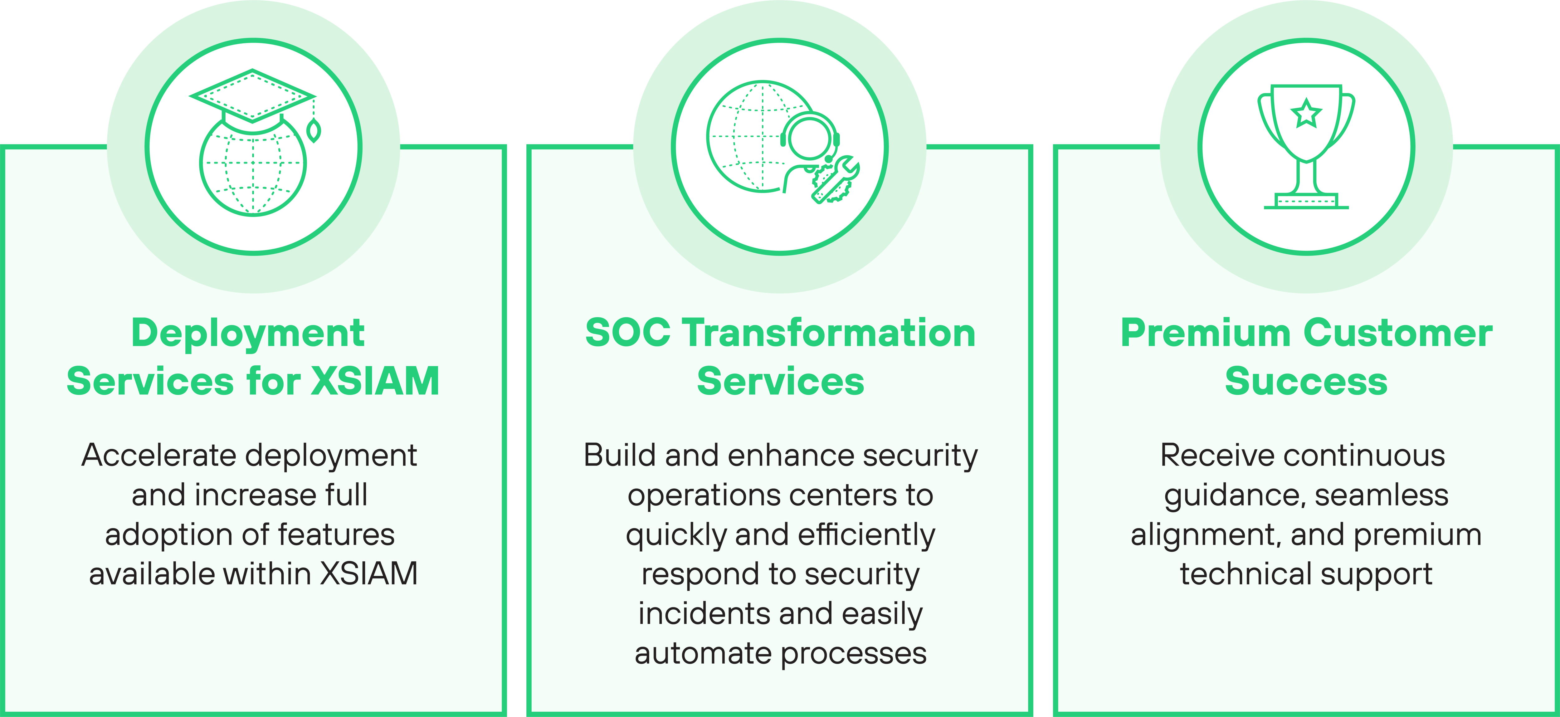 XSIAM-Bereitstellungsdienste beschleunigen die Akzeptanz der Cortex XSIAM-Funktionen für eine schnellere Amortisation.